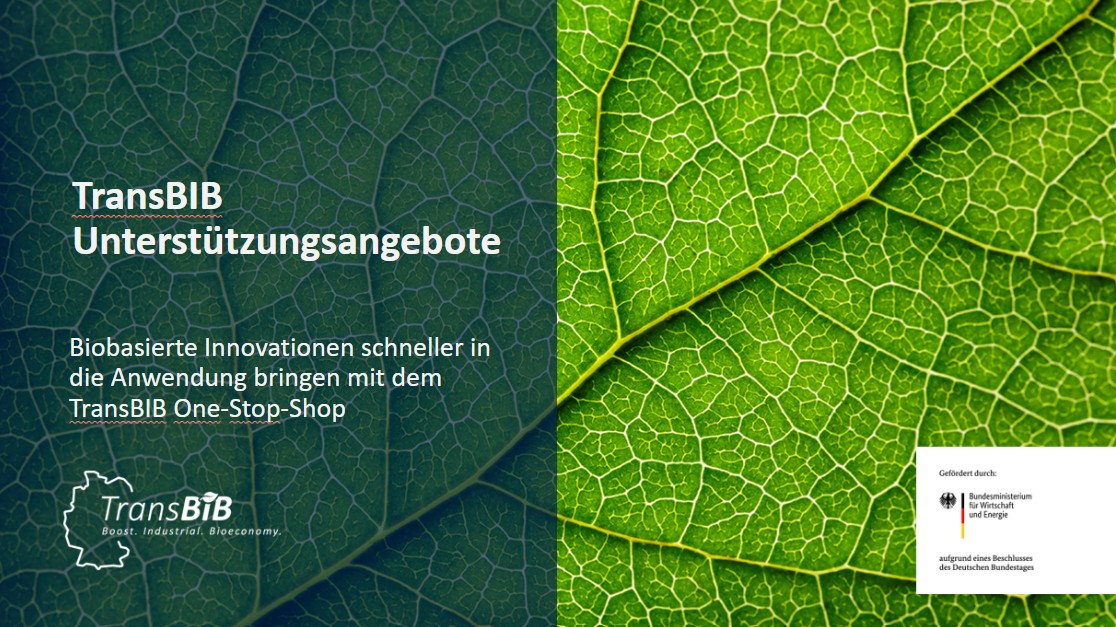 Der TransBIB One-Stop-Shop unterstützt Unternehmen dabei, biobasierte Innovationen gezielt in die industrielle Anwendung zu überführen. Der rund 12-minütige Film wurde im Rahmen eines Webinars aufgezeichnet und gibt einen kompakten Überblick über Angebote, Services und Unterstützungsformate – von der Vernetzung über die Technologieauswahl bis hin zum Transfer in die Praxis. Schauen Sie rein und verschaffen Sie sich einen umfassenden Eindruck der Möglichkeiten.