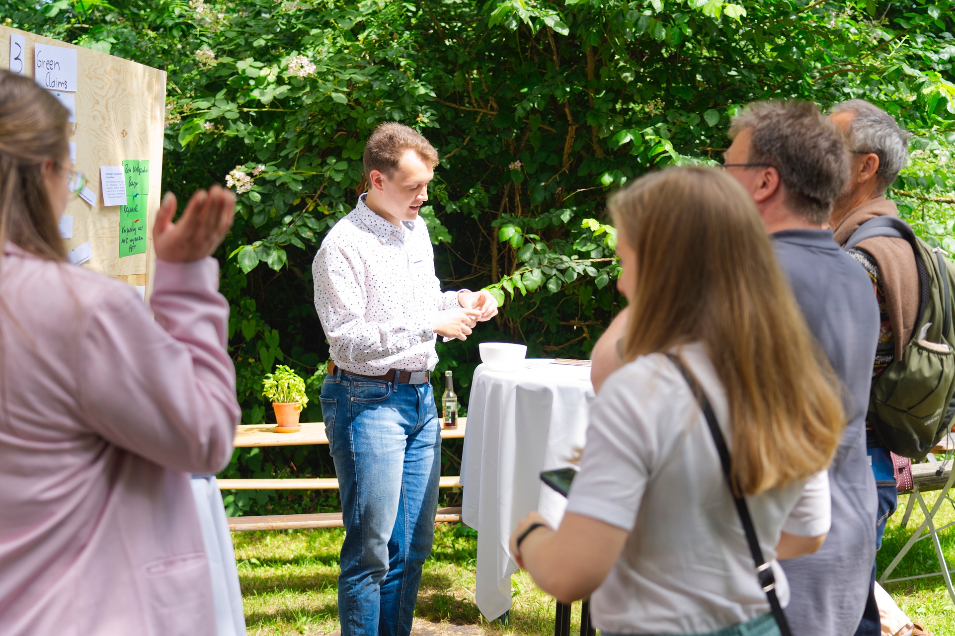 The BENEFICIAL DESIGN INSTITUTE presented its approach to converting textile waste from fast fashion or workwear into biocompatible plastic (PHB) - an innovative raw material for packaging, biomedicine or agricultural products. AppliChrom GmbH presented analytical chromatography solutions for the identification of chemical and biological compounds. IMA Karlsruhe GmbH presented a DNA-based method for precisely analysing organic waste streams. The Lausitzer Naturfaser Ebersbach UG uses residual biomass to produce disposable products suitable for everyday use.