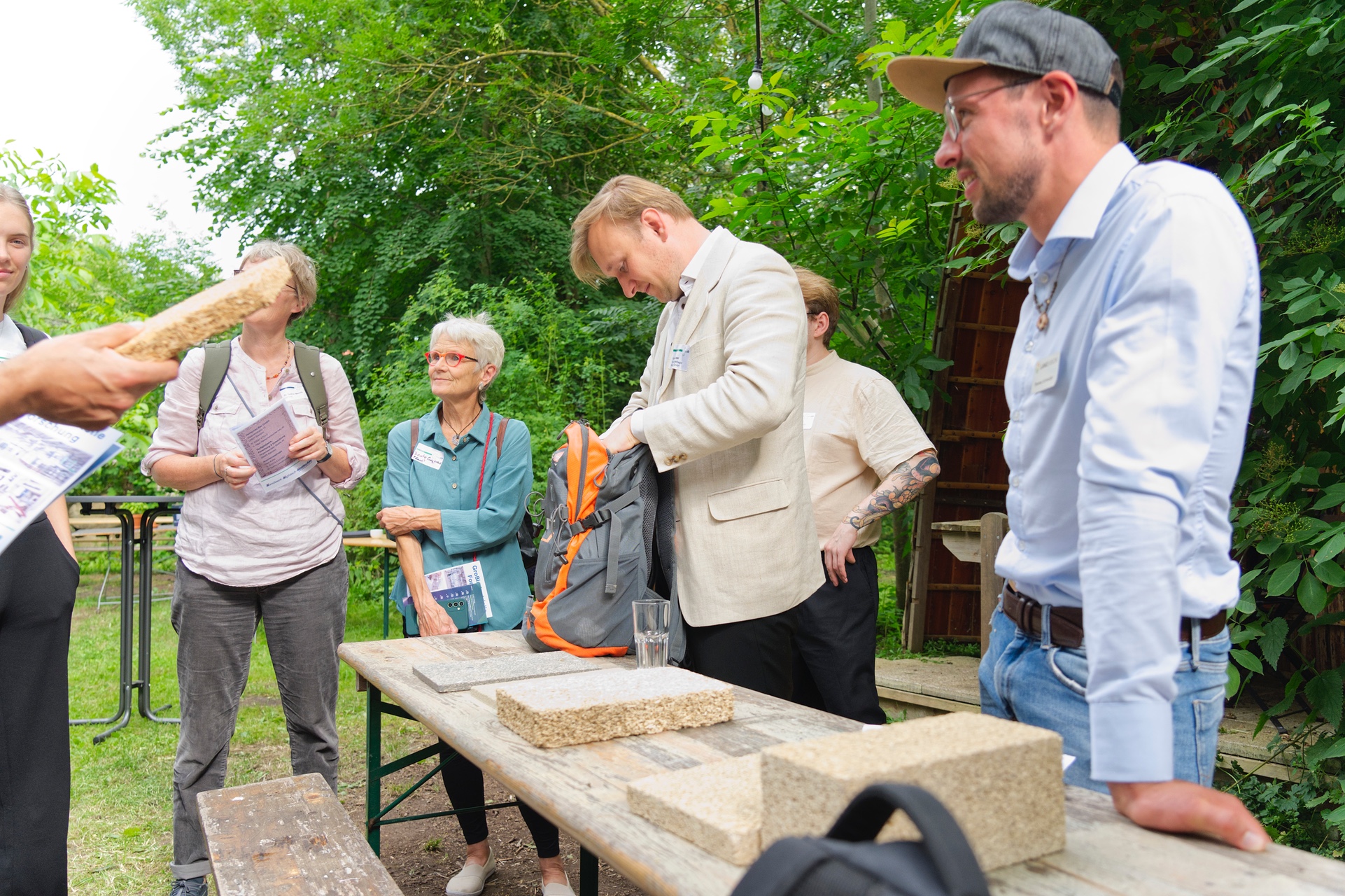 Several companies were also represented in the construction sector: Halm GmbH uses straw as a natural insulating material, while Seegrashandel GmbH was able to report that seagrass has already been successfully used as an insulating material in over 500 construction projects. Urban Beta UG presented a modular construction system made from recyclable components. Hentschke Bau GmbH plans to develop and market recyclable building material panels on a larger scale in the future.