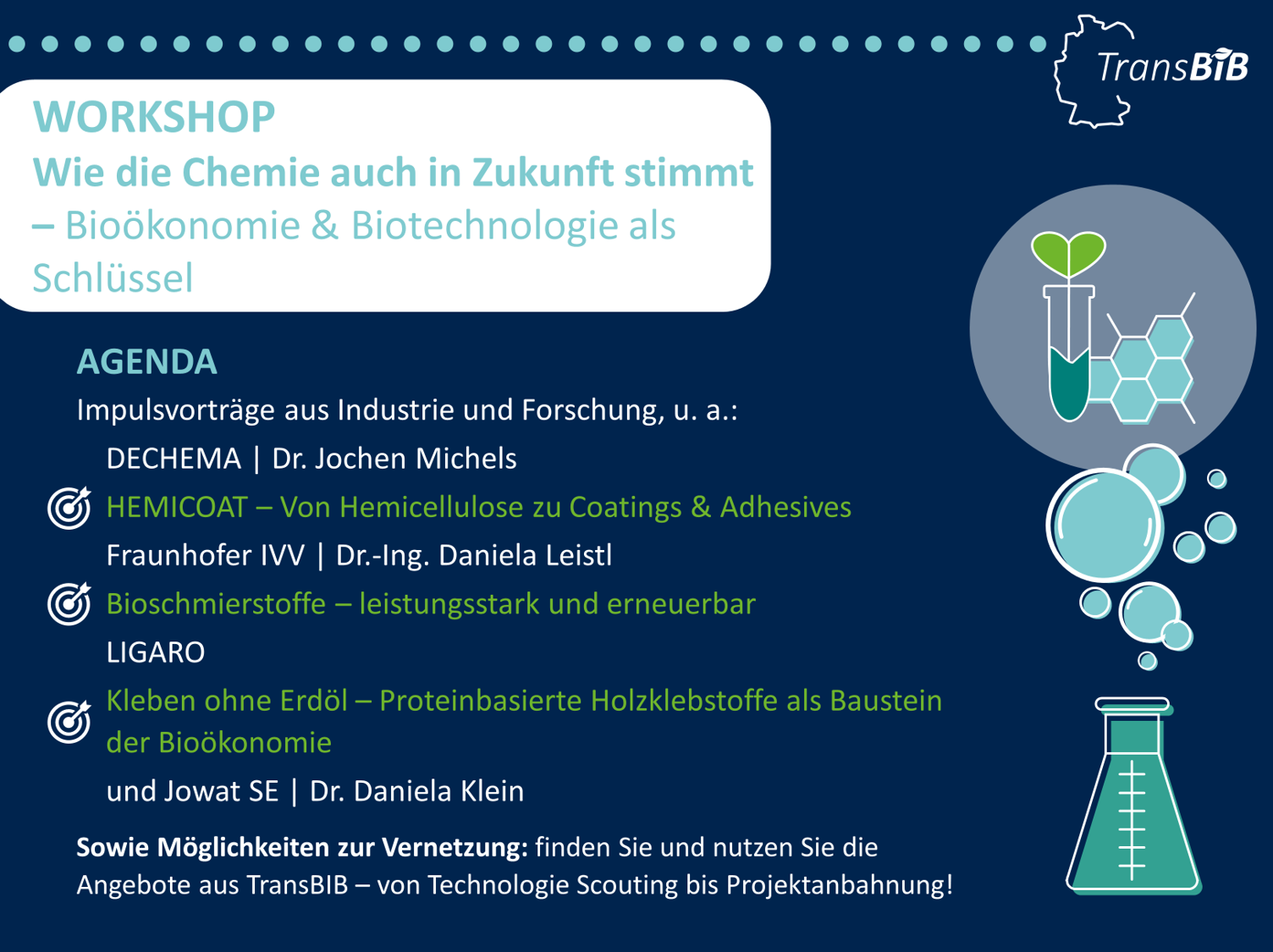 TransBIB Workshop: Wie die Chemie auch in Zukunft stimmt – Bioökonomie & Biotechnologie als Schlüssel
